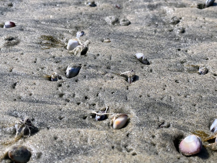 The day was crisp, and the wind was blowing steadily; as you can see, bean clams span the intertidal zone as far as the eyes can see! My grandson and I played on shore barefoot, and you could feel the clams and their attached hydroids moving around in the sand (for more information, click on the link below.)