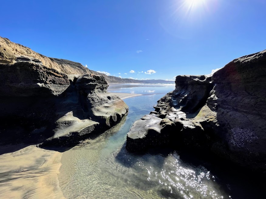 To walk in front of the Saint Malo housing and check out the lagoon weir, I headed to Cassidy Street beach and continued my walk south. When first entering the beach, I noticed the deep water pools close to the rocks, so I had to walk gingerly.
