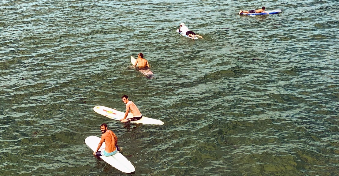 We parked over at Paradise Park and walked south toward Crystal Pier. Trying to get some relief from the heat, we walked onto the pier. I wanted to see what was going on with all of the surfers riding the waves.