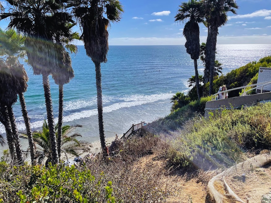 Fun Fact- This pathway at Fletcher Cove was created in 1922 by the community leader and developer, Colonel Ed Fletcher, to connect down onto the beach. Tons of cliff material was broken down by this one man just by using a fire hose and overflow water from Lake Hodges. He was able to finish this project in three months!